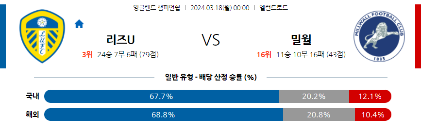 [킹콩티비] 리즈유나이티드 뭘월 분석 3월18일 챔피언쉽 스포츠중계