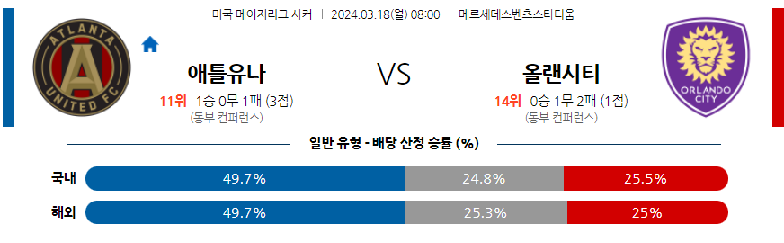[킹콩티비] 애틀랜타유나이티드 올랜도시티 분석 3월18일 메이저리그사커 스포츠중계