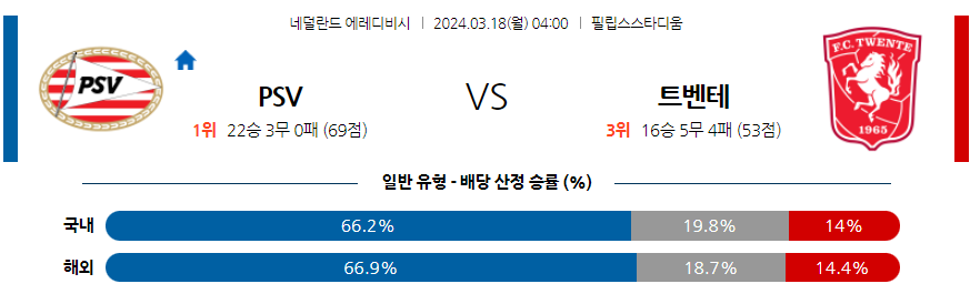 [킹콩티비] PSV에인트호번 트벤테 분석 3월18일 에레디비시 스포츠중계