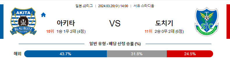 아키타 도치기 축구분석