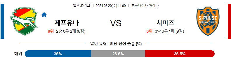 ● 시미즈 (일본 2부 3위 / 무승승패승)