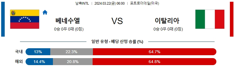[킹콩티비] 베네수엘라 이탈리아 분석 3월22일 남축INTL 스포츠중계