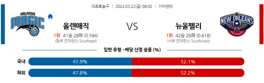 [킹콩티비] 올랜도 뉴올리언스 분석 3월22일 NBA 스포츠중계