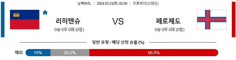 [킹콩티비] 리히텐슈타인 페로제도 분석 3월23일 남축INTL 스포츠중계