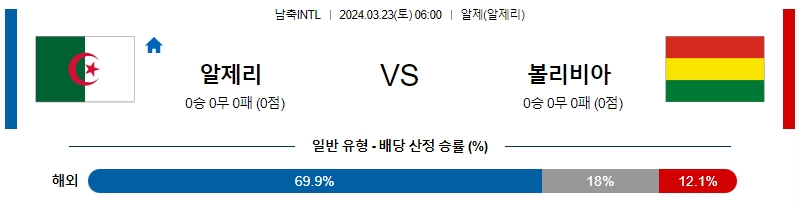 [킹콩티비] 알제리 볼리비아 분석 3월23일 남축INTL 스포츠중계