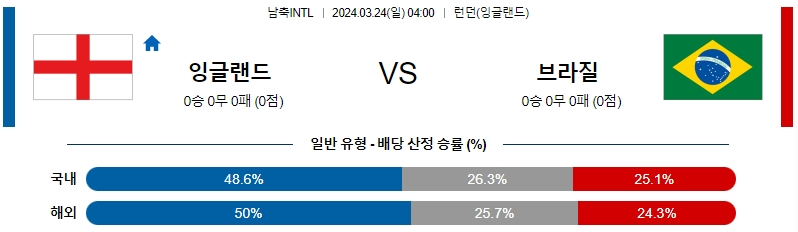 [킹콩티비] 잉글랜드 브라질 분석 3월24일 남축INTL 스포츠중계