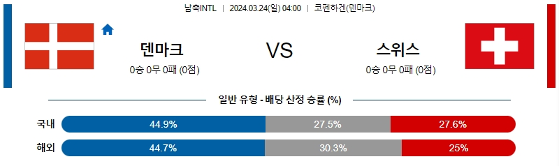 [킹콩티비] 덴마크 스위스 분석 3월24일 남축INTL 스포츠중계
