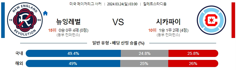 오버(2.5) 양상을 기대하는 경기고, 핸디캡을 건다면 시카고도 가능성이 있을 것 같다. 뉴잉글랜드가 상당히 전개에 비해서 골이 잘 나오는 상황이 아니라는 점이 치명적인 상태. 이 상황에서는 오히려 역습 한 방에 취약한 모습을 보여줄 가능성도 없지는 않을 것으로 본다. 물론 시카고도 수비 조직인 안정적인 상황은 아니라서, 일반 패는 변수가 없지는 않다.