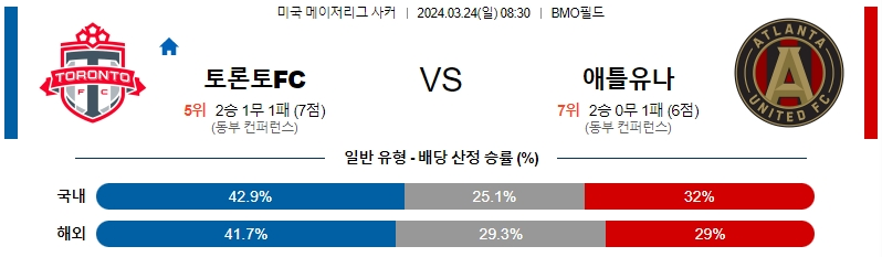 토론토가 철퇴 한방으로 이기는 시나리오도 가능은 할 듯. 그만큼 토론토 3백의 저지력과, 애틀랜타의 약점이 제법 뚜렷한 편이다. 물론 공격적으로는 개인 기량에 의존하는 비중이 높은 토론토라서, 애틀랜타의 원정 수비가 빈약하다는 점을 감안하더라도, 높은 점수를 주기는 어렵다. 언더(2.5)를 픽하는 것이 옳을 듯.