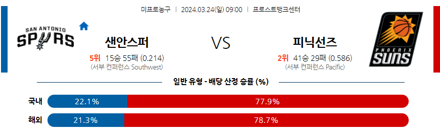 [킹콩티비] 샌안토니오 피닉스 분석 3월24일 NBA 스포츠중계