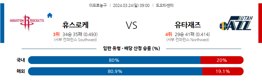 [킹콩티비] 휴스턴 유타 분석 3월24일 NBA 스포츠중계