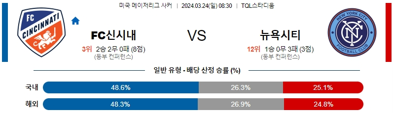 [킹콩티비] 신시내티 뉴욕시티 분석 3월24일 메이저리그 스포츠중계