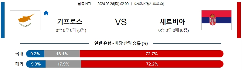 [킹콩티비] 키프로스 세르비아 분석 3월26일 남축INTL 스포츠중계