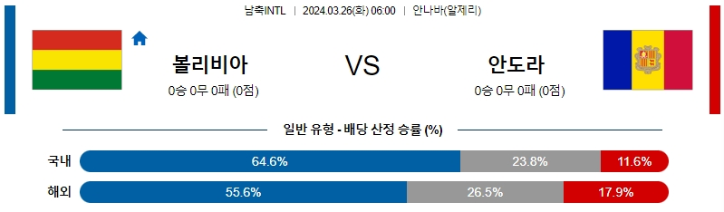 [킹콩티비] 볼리비아 안도라 분석 3월26일 남축INTL 스포츠중계
