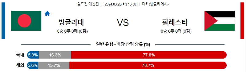 [킹콩티비] 방글라데시 팔레스타인 분석 3월26일 월드컵예선 스포츠중계