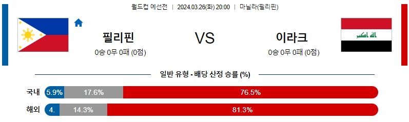 [킹콩티비] 필리핀 이라크 분석 3월26일 월드컵예선 스포츠중계