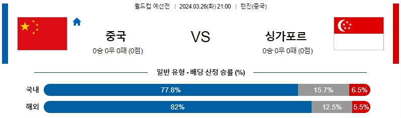 [킹콩티비] 중국 싱가폴 분석 3월26일 월드컵예선 스포츠중계