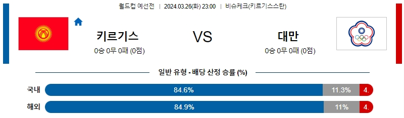 [킹콩티비] 키르기스스탄 대만 분석 3월26일 월드컵예선 스포츠중계