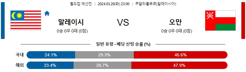 [킹콩티비] 말레이시아 오만 분석 3월26일 월드컵예선 스포츠중계