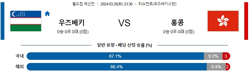 [킹콩티비] 우즈벡 홍콩 분석 3월26일 월드컵예선 스포츠중계