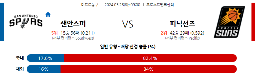 [킹콩티비] 샌안토니오 피닉스 분석 3월26일 NBA 스포츠중계