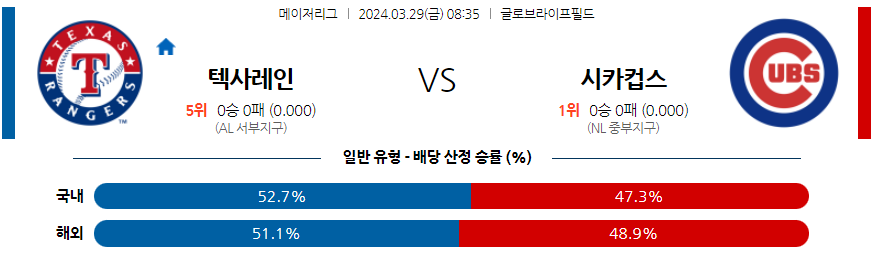 [킹콩티비] 텍사스 시카고C 분석 3월29일 MLB 스포츠중계