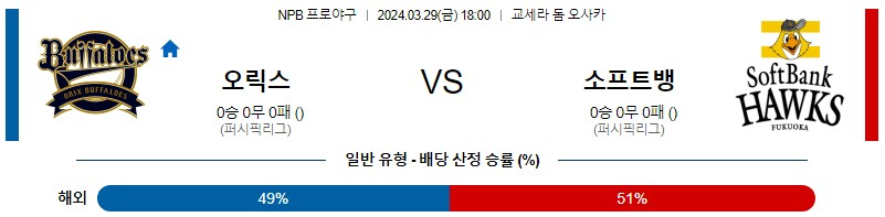[킹콩티비] 오릭스 소프트뱅크 분석 3월29일 NPB 스포츠중계