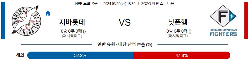 [킹콩티비] 치바롯데 니혼햄 분석 3월29일 NPB 스포츠중계