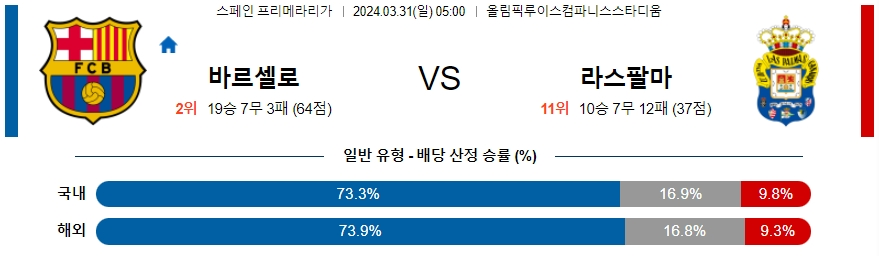 [킹콩티비] 바르셀로나 라스팔마스 분석 3월31일 라리가 스포츠중계