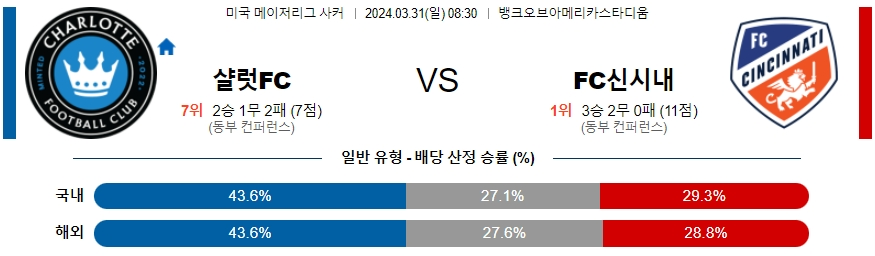 신시내티가 이길 것으로 보는 매치. 확실히 지난 시즌 대비 원정에서도 수비적인 리스크가 크게 없는 것이 크고, 속공 상황에서 강해 득점력은 오히려 홈보다 원정에서 더 좋은 면모를 보여주고 있기도 하다. 수비에서 샬럿이 안정성을 1순위로 생각하는 것은 좋은데, 신시내티보다는 공격에서의 갑갑함이 보이고 있는 것은 사실.