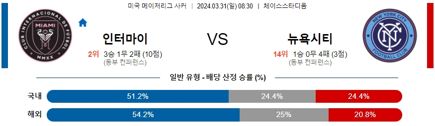 [킹콩티비] 인터마이애미 뉴욕시티 분석 3월31일 메이저리그 스포츠중계