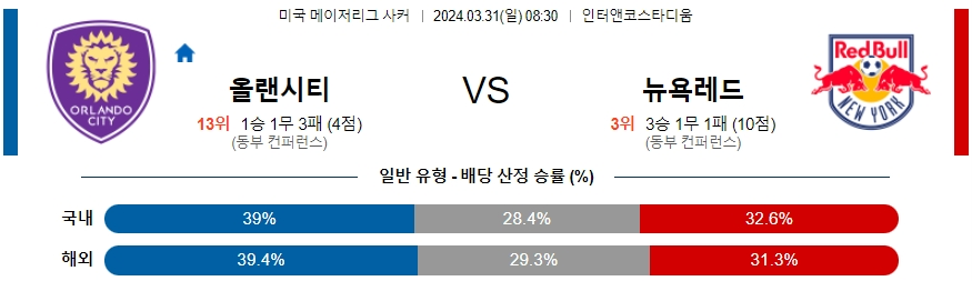[킹콩티비] 올랜도 뉴욕레드불스 분석 3월31일 메이저리그 스포츠중계