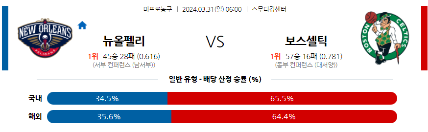 [킹콩티비] 뉴올리언스 보스턴 분석 3월31일 NBA 스포츠중계