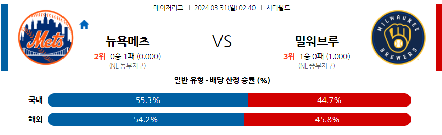 [킹콩티비] 뉴욕메츠 밀워키 분석 3월31일 MLB 스포츠중계