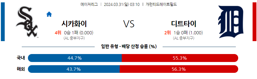 [킹콩티비] 시카고W 디트로이트 분석 3월31일 MLB 스포츠중계
