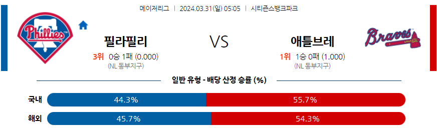 [킹콩티비] 필라델피아 애틀랜타 분석 3월31일 MLB 스포츠중계