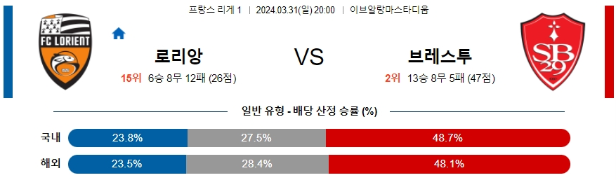 [킹콩티비] 로리앙 브레스트 분석 3월31일 리그1 스포츠중계