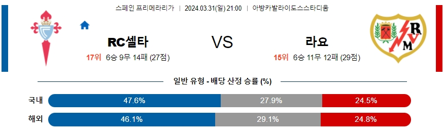 [킹콩티비] 셀타 라요 분석 3월31일 라리가 스포츠중계
