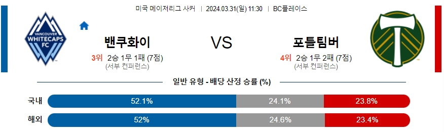[킹콩티비] 밴쿠버 포틀랜드 분석 3월31일 메이저리그 스포츠중계