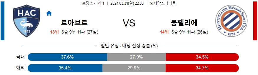 르아브르 몽펠리에 3월31일