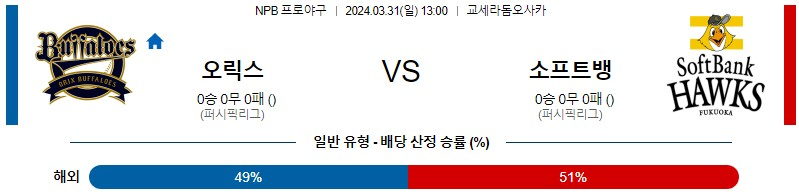 [킹콩티비] 오릭스 소프트뱅크 분석 3월31일 NPB 스포츠중계