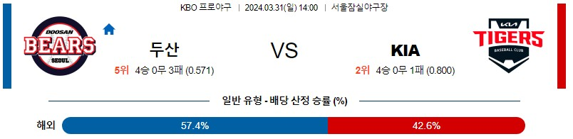 [킹콩티비] 두산 KIA 분석 3월31일 KBO 스포츠중계