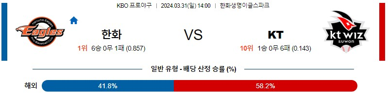 [킹콩티비] 한화 KT 분석 3월31일 KBO 스포츠중계