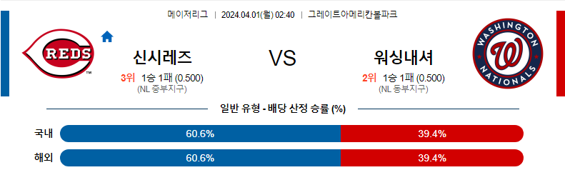 [킹콩티비] 신시내티 워싱턴 분석 4월1일 MLB 스포츠중계