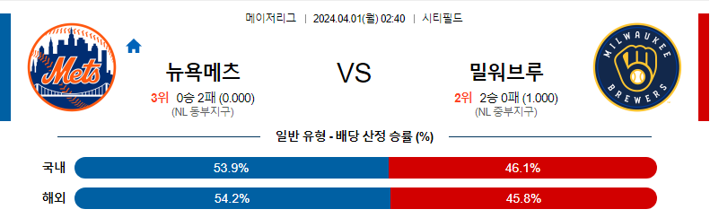 [킹콩티비] 뉴욕메츠 밀워키 분석 4월1일 MLB 스포츠중계