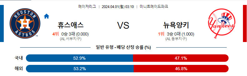 [킹콩티비] 휴스턴 뉴욕양키스 분석 4월1일 MLB 스포츠중계