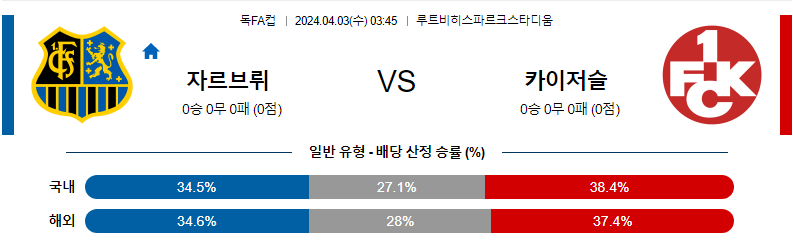 [킹콩티비] 자르브뤼켄 카이저슬라우테른 분석 4월3일 독일FA컵 스포츠중계