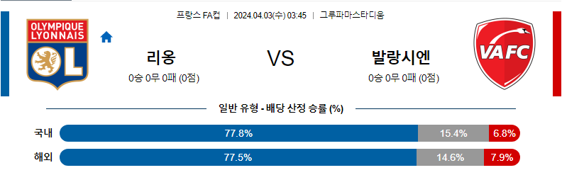 [킹콩티비] 리옹 발랑시엔 분석 4월3일 프랑스FA컵 스포츠중계