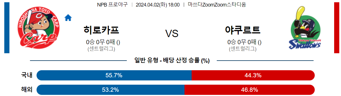 [킹콩티비] 히로시마 야쿠르트 분석 4월2일 NPB 스포츠중계