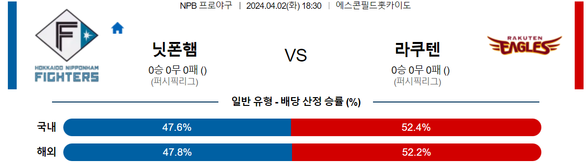 [킹콩티비] 니혼햄 라쿠텐 분석 4월2일 NPB 스포츠중계